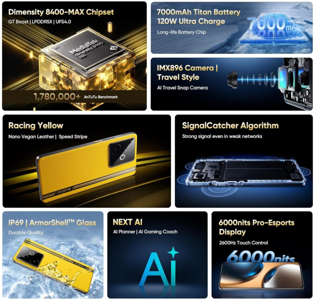- Powered by MediaTek Dimensity 8400 MAX for blazing-fast performance and next-gen efficiency. Most Intelligent Chipset Po…