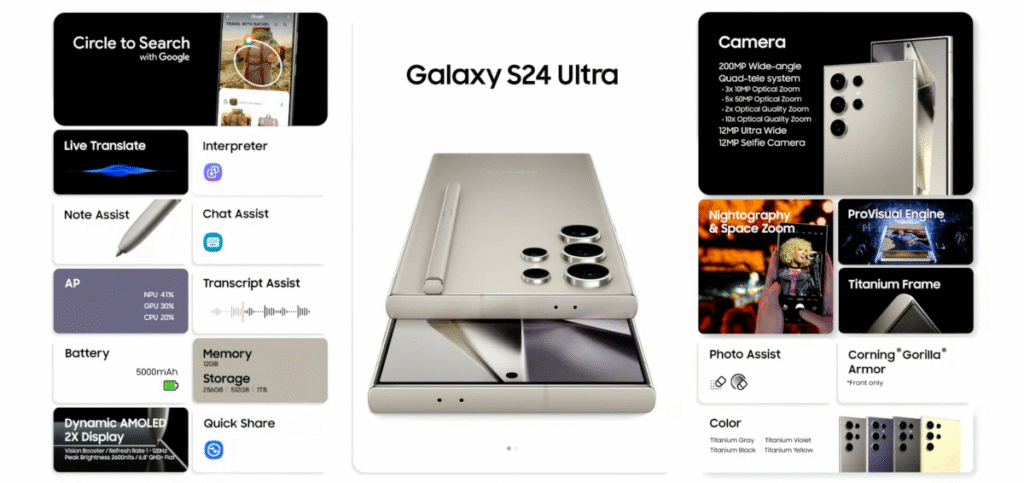 - Galaxy AI – Welcome to the era of mobile AI. With Galaxy S24 Ultra and One UI in your hands, you can unleash completely …